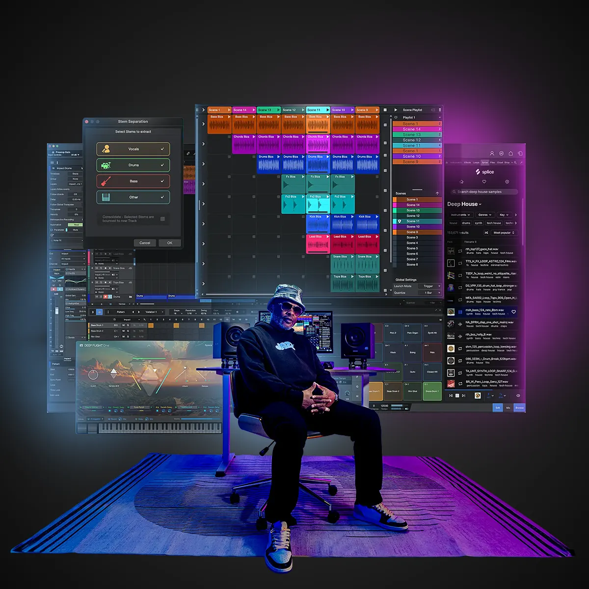 Utiliza redes neuronales para detectar tempo, separar stems y buscar loops en Splice.